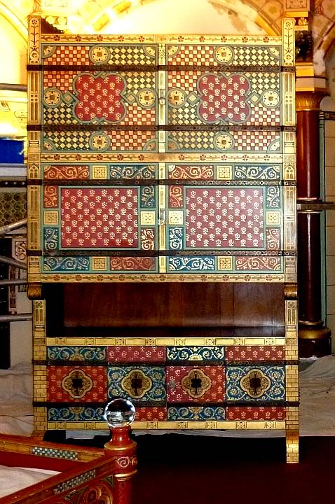 Campbell, Smith & Co. is still one of the top names in specialist "heritage" decoration today. For example, it was recently responsible for the much-praised refurbishment of St Martin-in-the-Fields in London. Interestingly, it is based in Fleet, Hampshire, where Burges built the local church of All Saints. The point here is that, as mentioned earlier, Burges assembled the very best contemporary craftsmen to carry out his work, and had a very close relationship with them. Thus, under the guidance of his assistant and clerk of works in Cardiff, William Frame, work carried on after his death very much if not completely as he would have wanted it.