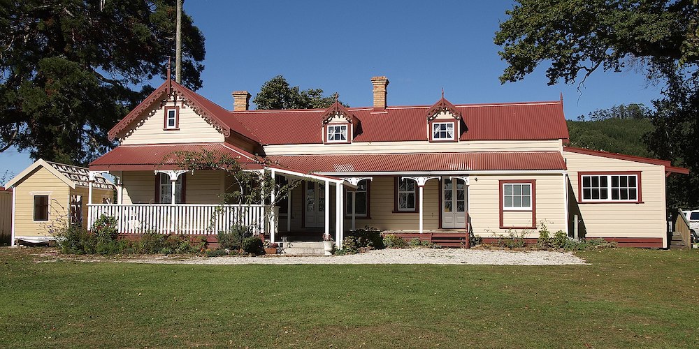 Athenree Homestead, restored. Photo credit: Ulrich Lange, Dunedin, New Zealand, originally posted on Wikipedia on the Creative Commons Attribution-Share Alike 3.0 Unported license.