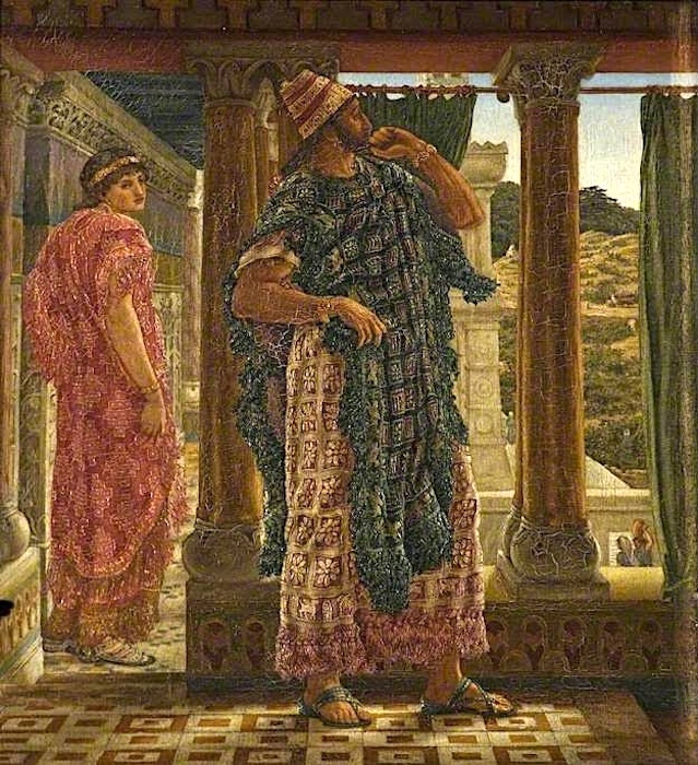 King Ahab's Coveting. Thomas Matthews Rooke, RWS (1842-1942). Oil on canvas. 1879, made up of six individual panels, the individual panels differing slightly in size as shown in the captions below. The whole work is shared here from the website of the Russell-Cotes Art Gallery and Museum, Bournemouth (see bibliography). It was initially exhibited at the Royal Academy in 1879, nos. 987-92, and is one of the most important of Rooke's compositions, presenting successive scenes of a story from the Old Testament. The picture was subsequently shown at a number of important exhibitions in the nineteenth century, including the New Gallery, Autumn Exhibition, in 1892, no. 183, and the Columbian Exhibition held at the Art Institute of Chicago in 1893, no. 415.
