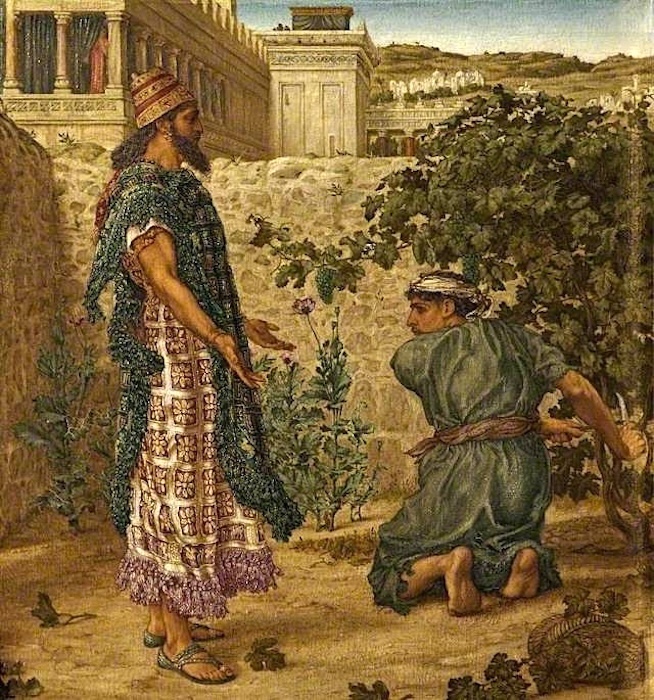 Yet the story of King Ahab and Naboth's vineyard was not a common one for Victorian painters, although James Smetham painted a small oil in 1856 of Naboth in his Vineyard, and Frank Dicksee made an engraving of Jezebel and Ahab Meeting Elijah in Naboth's Vineyard published in The Graphic on 6 May 1876.
