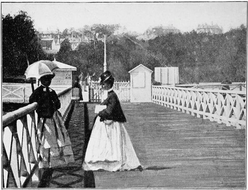 Two views of the Wooden Pier, 1861-80 (Mate, facing pp. 128, 160).