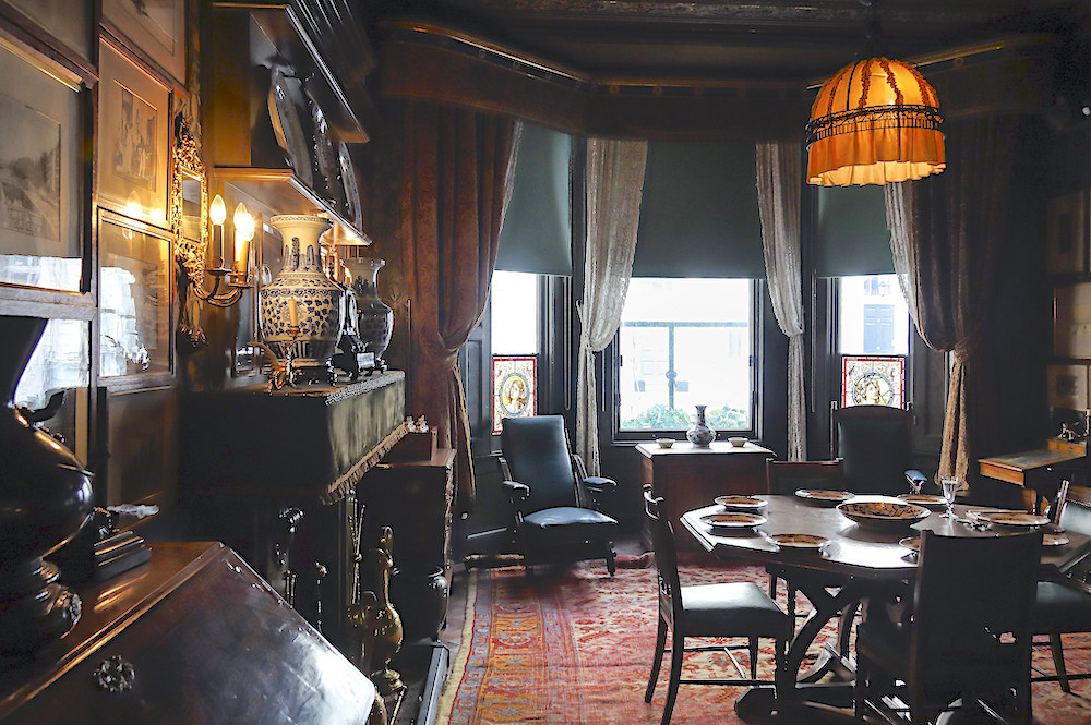 But from September, a new and exciting layer has been added to the mix, a Soundscape installed in the Dining Room. As one of the most important spaces in the house, where the Sambourne’s loved to entertain a wide circle of friends and where Sambourne himself delighted in good food and drink (often to the detriment of his health!), a great deal of care and money was lavished on the room. With its Morris and Co. wallpapers and embossed "leather" paper, antique and contemporary furniture, blue and white oriental porcelain and stained glass panels, the Dining Room was the Sambournes’ pride and joy. And, of course, the successful running of it all depended on the hard work of the cook and housemaids.