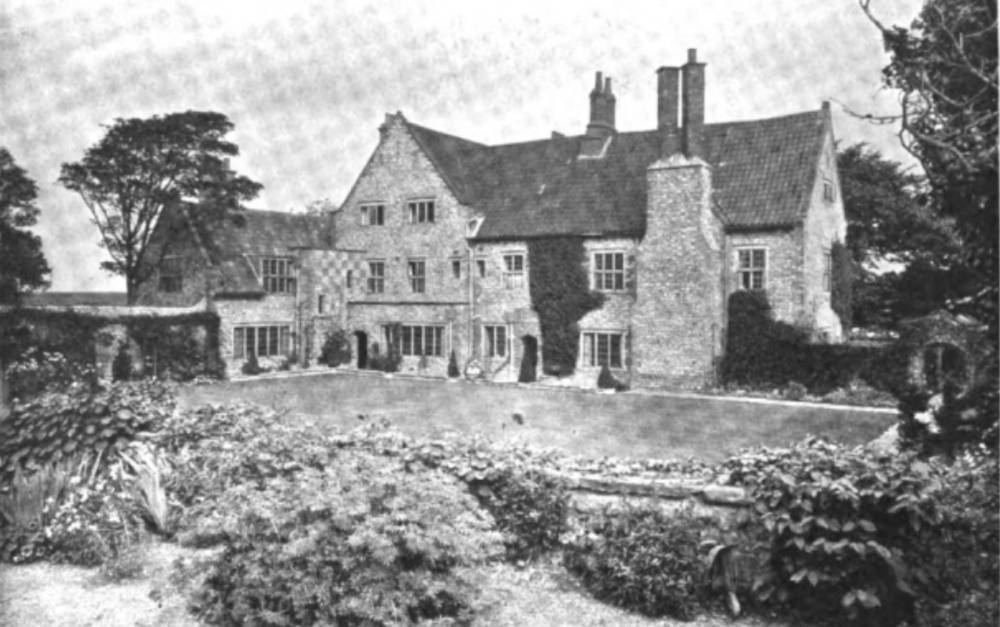 Left: Runton Old Hall, Suffolk, as restored and reconfigured by Baillie Scott with gardens designed by Gertrude Jekyll. “It has been the task of the present writer to try and restore to this disfigured house some of its glories of its earlier state. . . . And so all the modern partitions were taken down, a new wing added, and the plan debveloped to meet the requirements of the occupant. The hall fireplace was reinstated and the chimney rebuilt” (222). [Click on images to enlarge them.]
