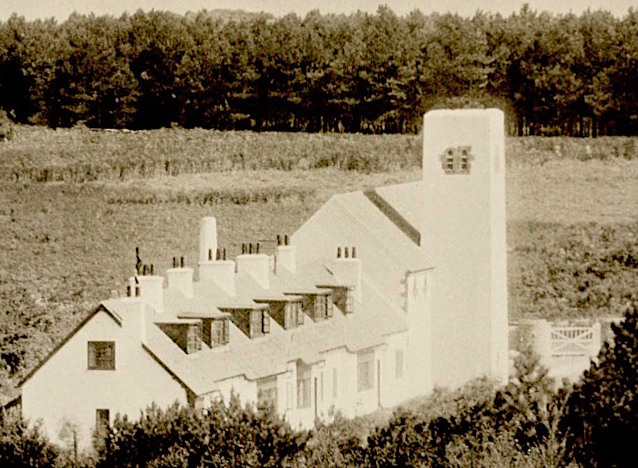 A master plan for the establishment was now drawn up by John Cyril Hawes (1876-1956), a devoutly religious architect who had been influenced by W.R. Lethaby and the Arts and Crafts Movement. Hawes had joined the Benedictine community on the island, and proposed a complex along the lines of medieval abbeys found in France, or, closer to home, the cathedral in Durham. But his plans for the main structure were not approved, and he left the island, eventually pursuing his twin religious and architectural callings in Australia.