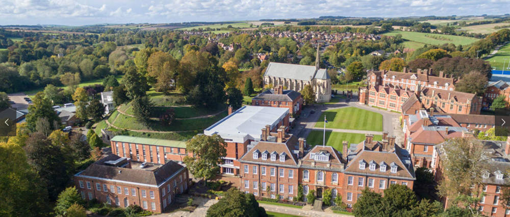 The chapel in its campus setting. Image from the Marlborough College site. Click on image to enlarge it.