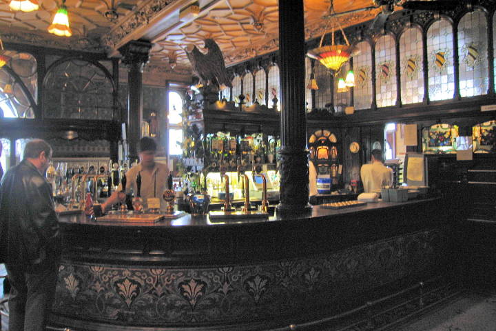 Henry Bloomfield Bare's Arts and Crafts embossed coppper panels in the bar