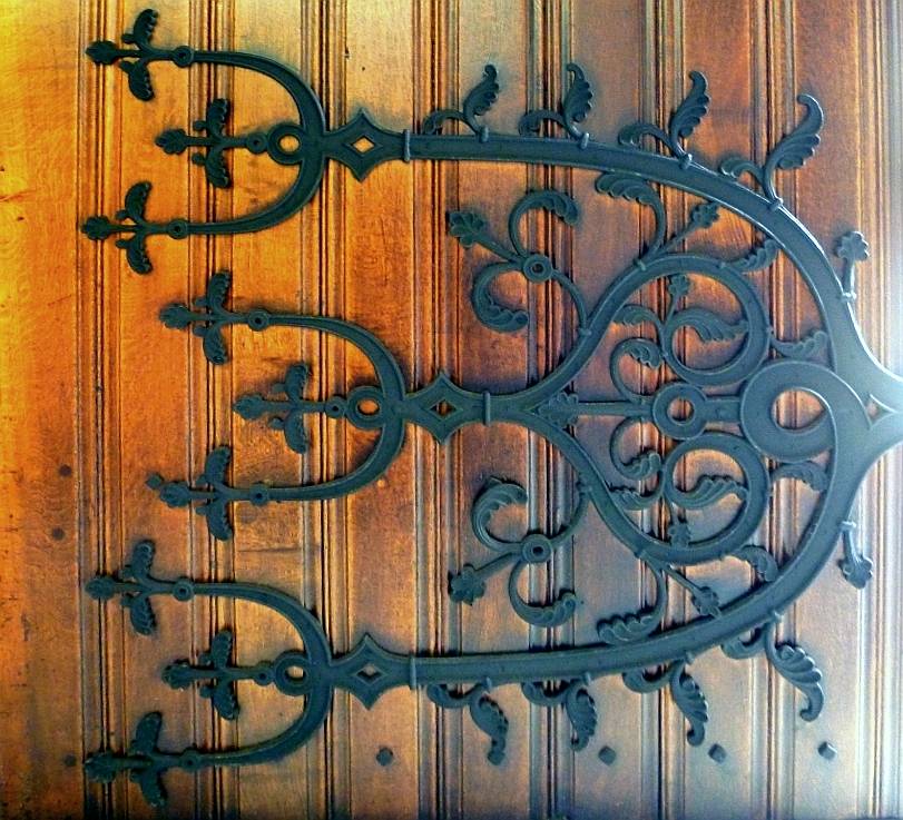 Left: The west entrance, approached from the north side. Right: Finely wrought hinge on the oak door at the west entrance.
