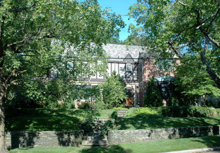Grotto Avenue Tudor Revival House. Providence, Rhode Island. I could not find a house number, but this building faces 125 Grotto. [Closer view — Carved stone doorway]. Photograph and text by George P. Landow. [You may use this image without prior permission for any scholarly or educational purpose as long as you (1) credit the photographer and (2) link your document to this URL.]