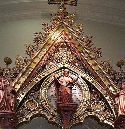 This screen was famous even before it was put in place, because of its appearance at the 1862 exhibition where it won a special medal: the jury called it "one of the most important works, not only for its size, but for the care with which it has been executed," and made the significant comment that it was also one of the most "successful endeavours to treat what is in fact a large architectural subject in metal alone"(medieval choir screens, of course, were made of stone or wood).