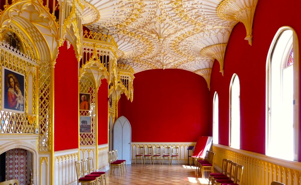 The fan-vaulted and gilded papier-mˆaché ceiling.