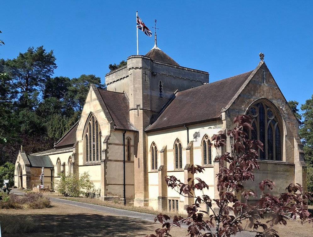 St Mark's Church, Whiteley Village, Surrey, designed by Walter J. Tapper. This Grade II listed building was completed in 1912 for the retirement community at this model village. Built in a traditional, indeed by now rather old-fashioned Gothic style, to suit the taste of an older generation, its central tower has a polygonal turret at the south-east corner, with a pyramidal roof.