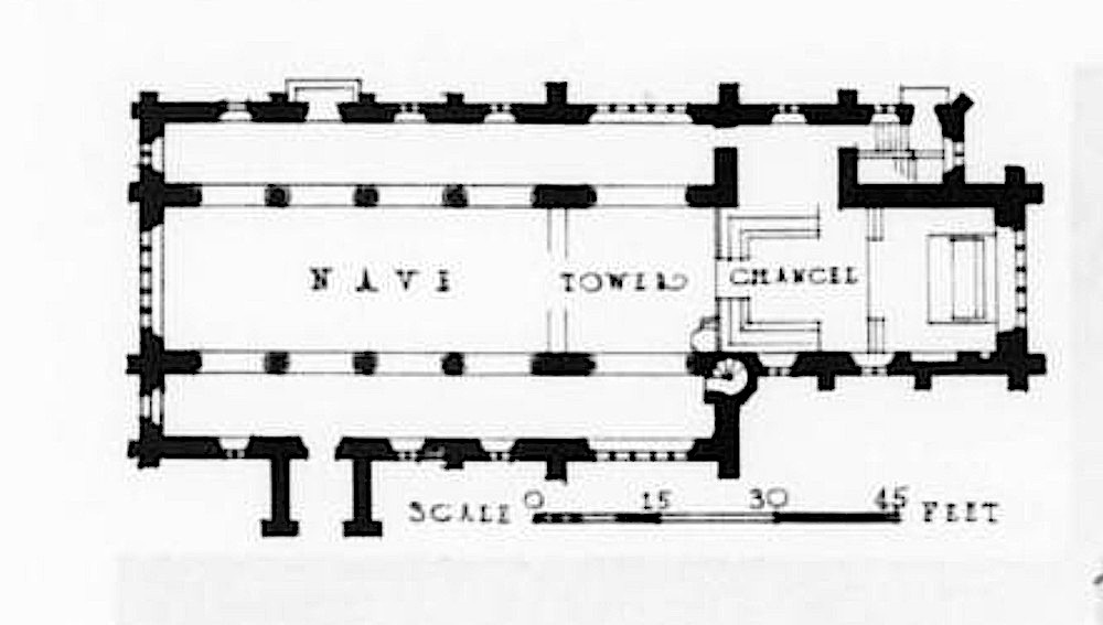Plan of the church, given at the top left of Plate 38, the Architectural Forum (relating to Phillips's article).
