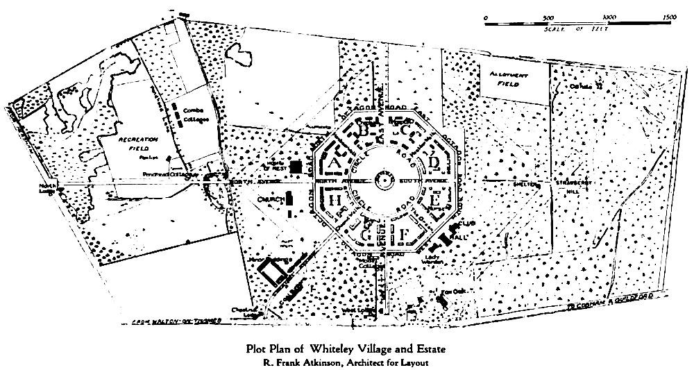 "Plot plan of Whiteley Village and Estate. T. Frank Atkinson, Architect for Layout" (Phillips 86).
