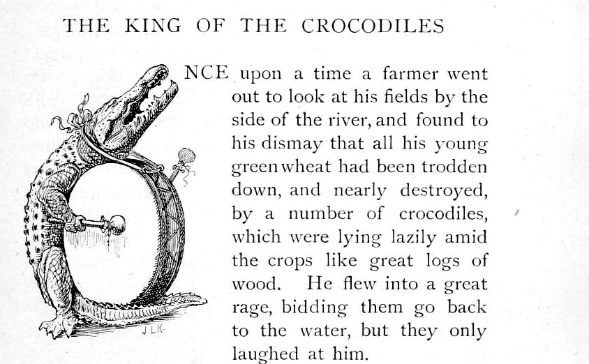 Left: Another initial "O" at the beginning of "The King of the Crocodiles" (p. 111). Right: Side-panel in "The Sparrow and the Crow" (p. 103)