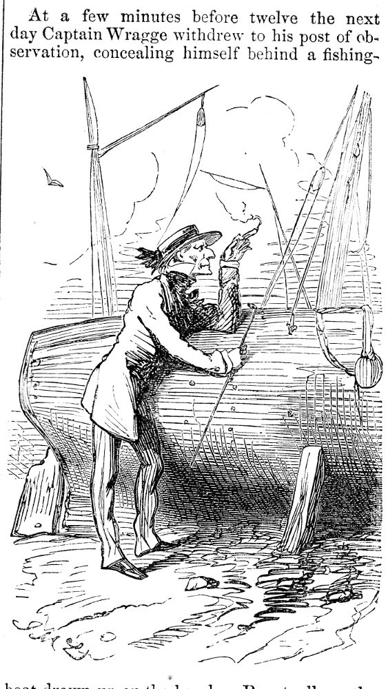Vignette Illustration: Wragge’s Positioning Himself behind a Fishing Boat on the Beach