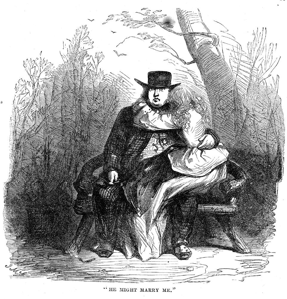 If the summer scene which then spread before Mr. Vanstone’s eyes had suddenly changed to a dreary winter view — if the trees had lost all their leaves, and the green fields had turned white with snow in an instant — his face could hardly have expressed greater amazement than it displayed when his daughter’s faltering voice spoke those four last words. He tried to look at her — but she steadily refused him the opportunity: she kept her face hidden over his shoulder. Was she in earnest? His cheek, still wet with her tears, answered for her. There was a long pause of silence; she waited — with unaccustomed patience, she waited for him to speak. He roused himself, and spoke these words only: “You surprise me, Magdalen; you surprise me more than I can say.” [Chapter IX: 239 in serial, pp. 38-39 in volume]
