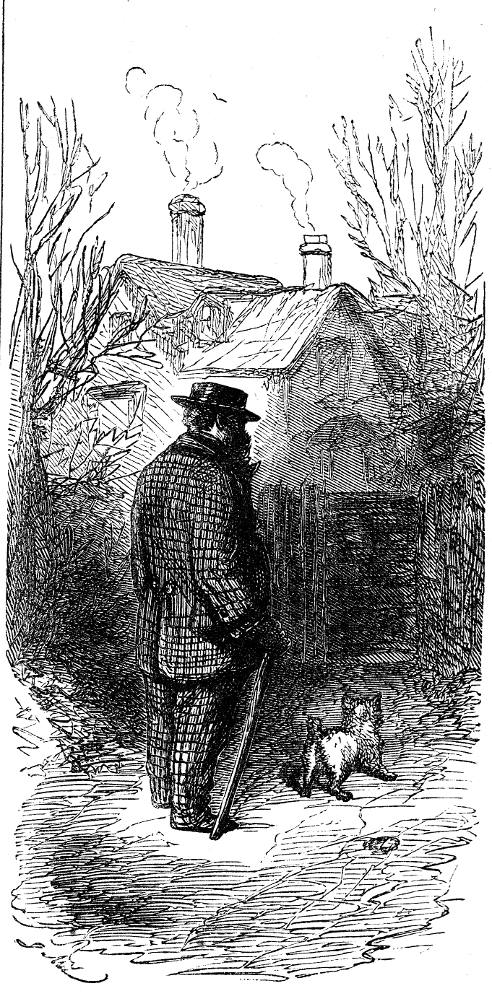 She waited a moment, and looked after him. She missed the customary flourish of his stick; she saw his little Scotch terrier, who had run out at his heels, barking and capering about him unnoticed. He was out of spirits: he was strangely out of spirits. What did it mean? [Chapter IX: 240 in serial, pp. 41-42 in volume as the chapter's tailpiece]