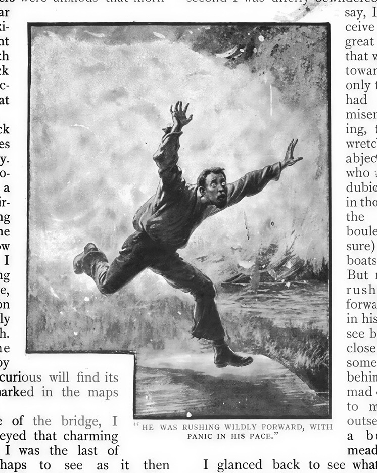 Indeed, a major theme in Victorian romance is destruction of the homeland and especially the Home Countries, either through invasion or as a result of some natural disaster. George Tomkyn Chesney had anticipated Wells’s ‘The War of the Worlds’ (1897) in The Battle of Dorking (1871), the story of a take-over by a German speaking adversary, and there were several other texts projecting the same apocalyptic despair. In After London (1885) Richard Jefferies offers a gloomy contemplation of a wrecked capital – again establishing a well-known trope – and the same situation prevails in Frederick Merrick White’s ‘The Doom of London’ (Pearson’s Magazine, 1903). In some of these texts, illustration plays a vital role. Goble embellishes White’s tale in images redolent of those in Wells’s Martian story, and in his work for Grant Allen’s ‘The Thames Vallery Catastrophe’ (The Strand, 1897) Alfred Pearse visualizes the irresistible power of earthquake and flooding in a series of dynamic and unsettling designs.