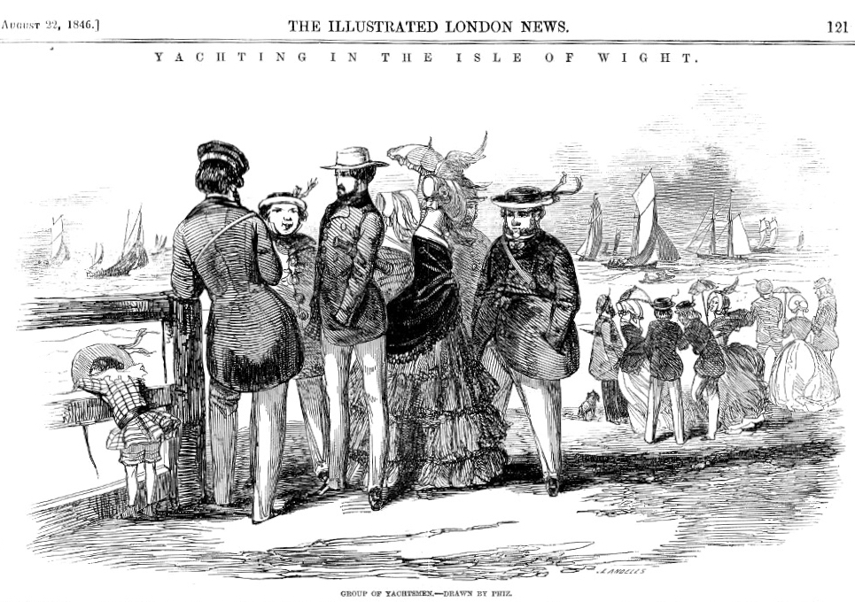 Browne, Hablot Knight. Group of Yachtsmen. The Illustrated London News. 22 August 1846: 121.