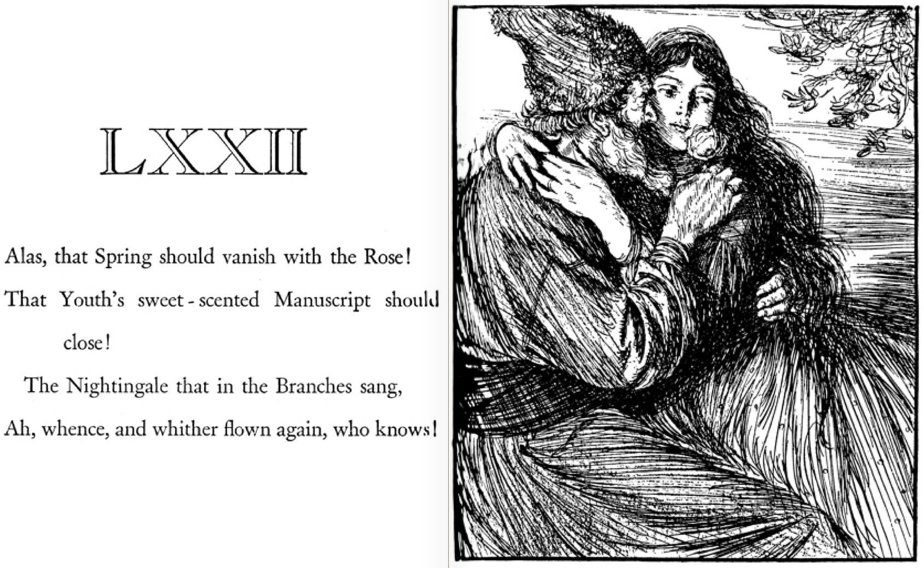 Edmund J. Sullivan's illustration to verse 72 of Fitzgerald's Rubáiyát of Omar Khayyám (1913). Source: Internet Archive version of a book from an unidentified library. [Click on image to enlarge it.]