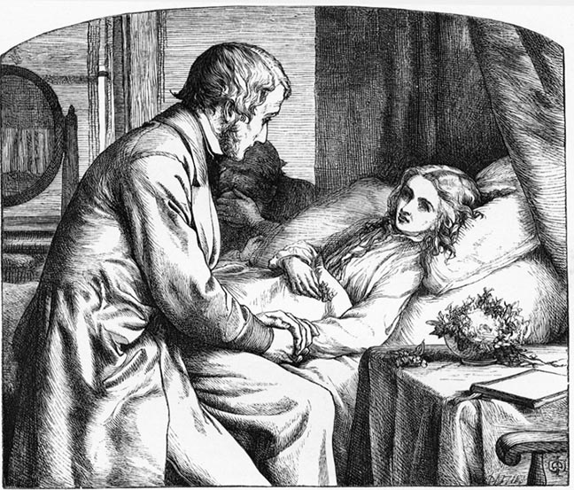 Last Words by John Dawson Watson. Wood-engraving by the Dalziels, 4 x 4 1/2 inches. 1862. An illustration for Henry Alford's "Last Words." Source: Wilmott, p. 323.