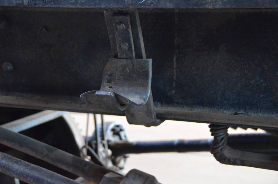 Brackets on two locomotives for poles used to push cars on adjacent tracks