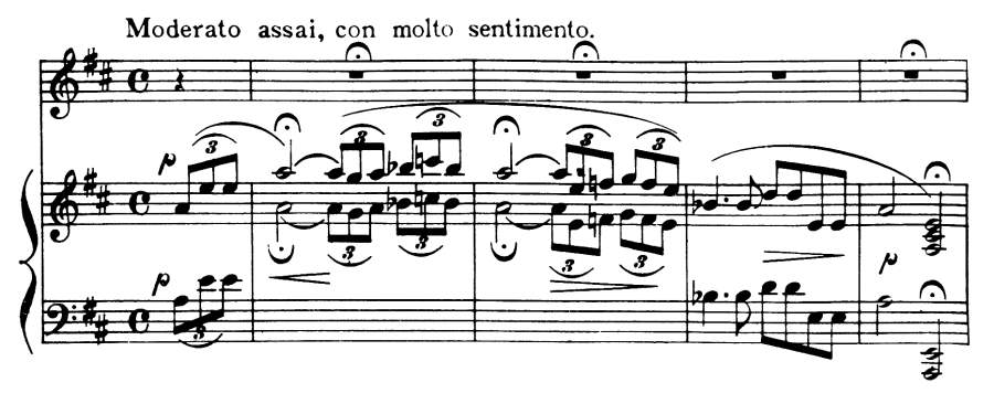 Although reputedly Indian in origin, the tune above suggests nothing of the exotic atmosphere conveyed by the introduction to the 'Kashmir! Song' (words by L. Hope, music by A. Woodforde-Finden) from Four Indian Love Lyrics of 1902. See the following musical example: