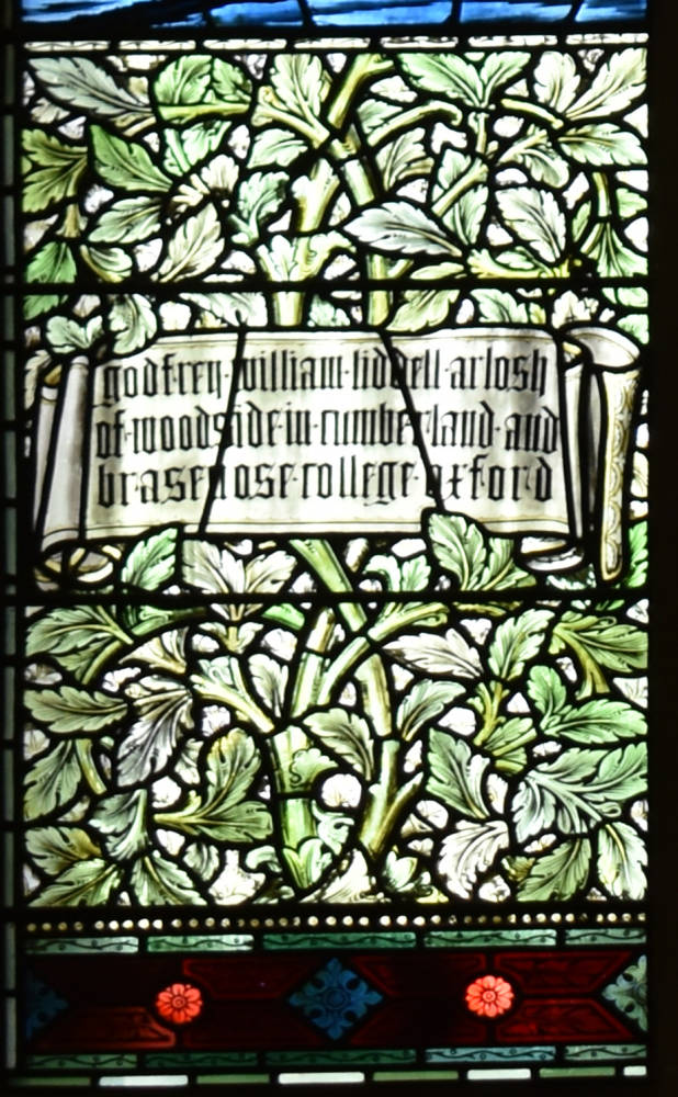 Chapel of Harris-Manchester College, Oxford. Designed by Edward Burne-Jones, executed by Morris & Co. The Arlosh family commissioned these wonderful windows in honor of their son Godfrey; see image at right in bottom row below. Click on images to enlarge them.