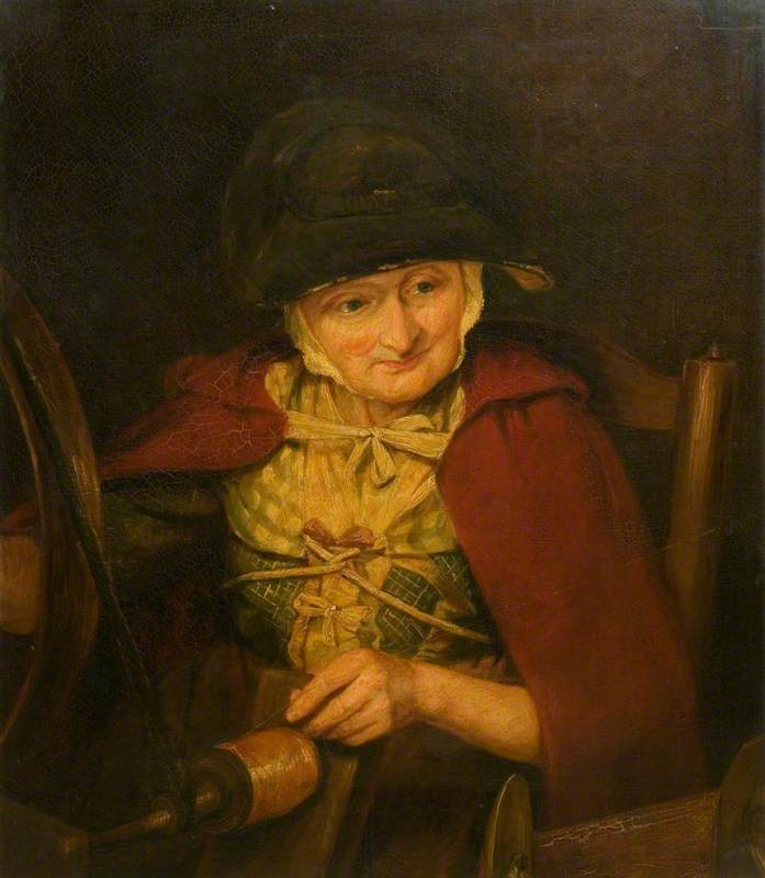 "An Old Woman Spinning" by Margaret Sarah Carpenter (1793-1892)