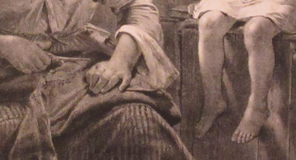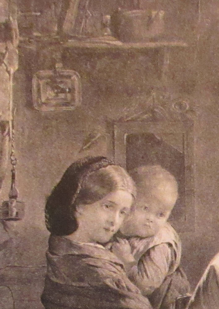 His Only Pair by Thomas Faed RA, 1826-1900. c. 1868. Reproductive print of the painting. Private Collection, U.K. As the owner points out, “the kettle on the left is a fine still-life in its own right.”