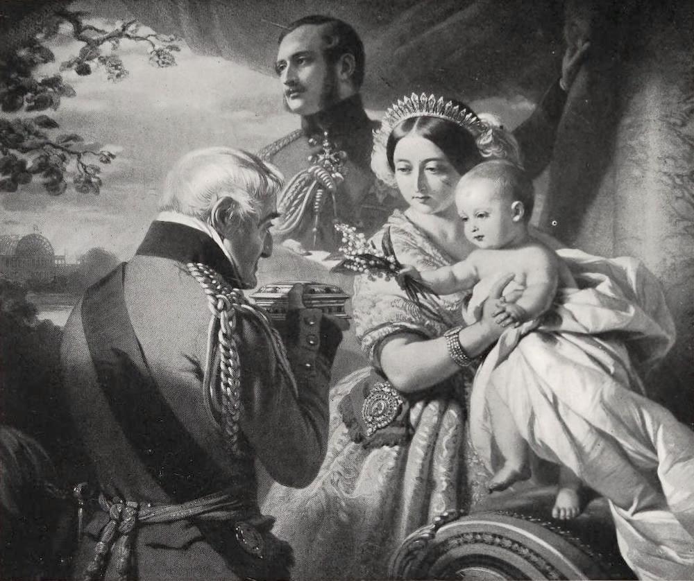 ... the German artist Franx Xaver Winterhalter ... would become [Queen Victoria and Prince Albert's] favoured contemporary painter and would produce over one hundred works in oil for his royal patrons between 1842 and 1871. Winterhalter was recommended to the Queen by Queen Louise of the Belgians, wife of her uncle Leopold, who described the artist in a letter to Queen Victoria as "a very excellent man full of zeal for his art, of goodwill, obligingness and real modesty" (RA VIC/MAIN/Y/9/ 77). He first arrived in London in May 1842 and returned each summer or autumn for six or seven weeks for many years. — A. R. (Anna Reynolds), p. 63