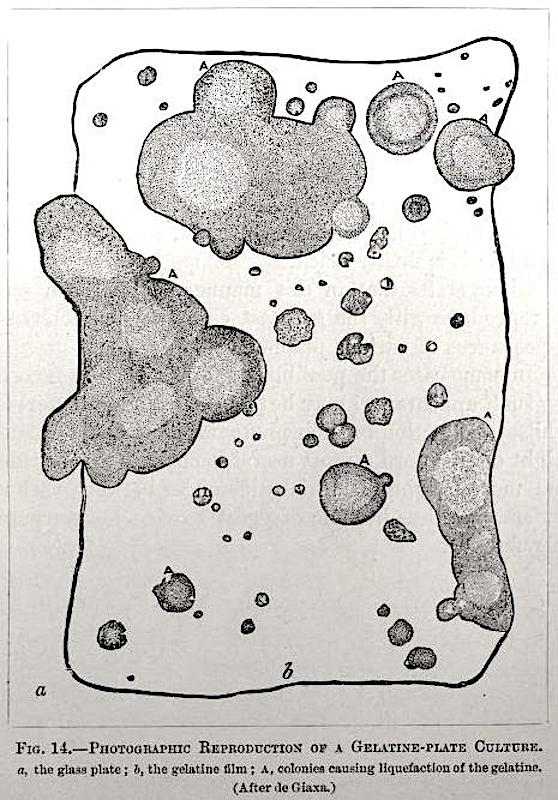 Left to right: (a) Microrganisms in Water (1894): 81. (b) Frontispiece and title-page of Pasteur (1898). (c) Cover of Our Secret Friends and Foes (1899).