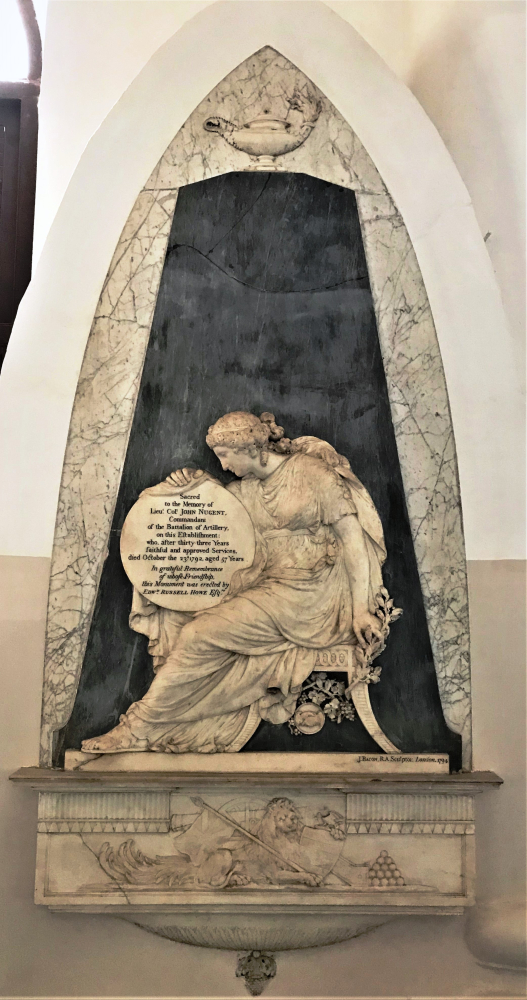Left: Lt-Col John Nugent by John Bacon, Senior 1791. Marble. St. Thomas's Cathedral, Bombay, Click on images to enlarge them.