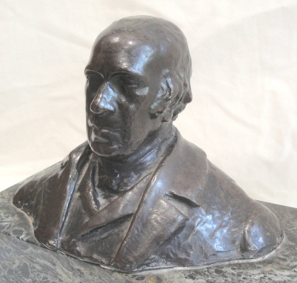According to the Mapping Sculpture website, Brown, a sculptor, modeller, and metal worker, was born in Glasgow and “initially trained with his father, then at the Glasgow School of Art and lastly with Lanteri at the Royal College of Art. After spending some years in London he returned to Glasgow to teach modelling, metal work and repoussé at Glasgow School of Art, c.1888-98. From 1892 he had a lively practice and executed numerous commissions in Glasgow and the west of Scotland.”