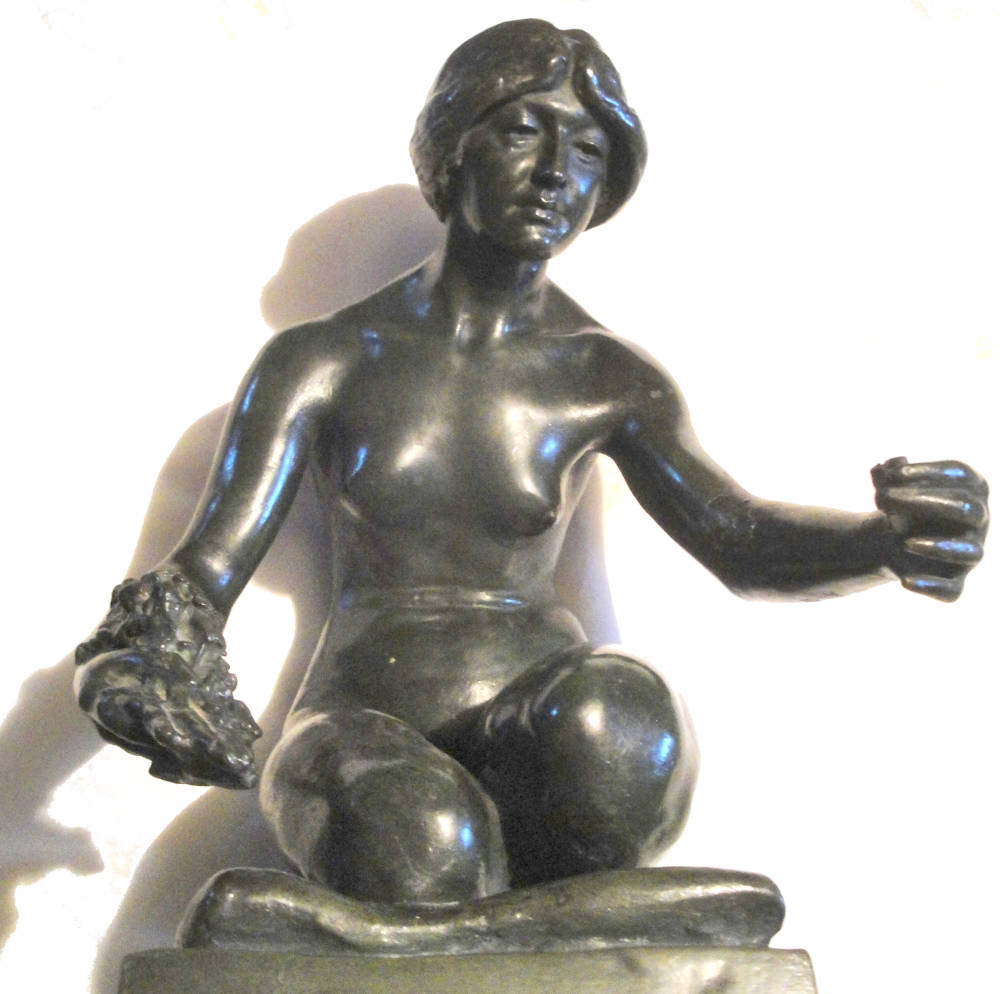 Spring. Albert Toft. Bronze, 18 inches high x 9 inches wide x 11 inches deep Signed: “Albert Toft 97” (on self base). Dated: “Mar 30 97” (on self base). It is not clear if this is a smaller version of the work exhibited Royal Academy in 1897, or if this is the work exhibited. [Click on images to enlarge them.]