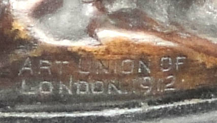 This bronze nude was offered in the last year of the Art Union’s existence. It indicates that towards the end, the Art Union was working with not overly talented, but lowly paid, female artists for their sculptural offerings.