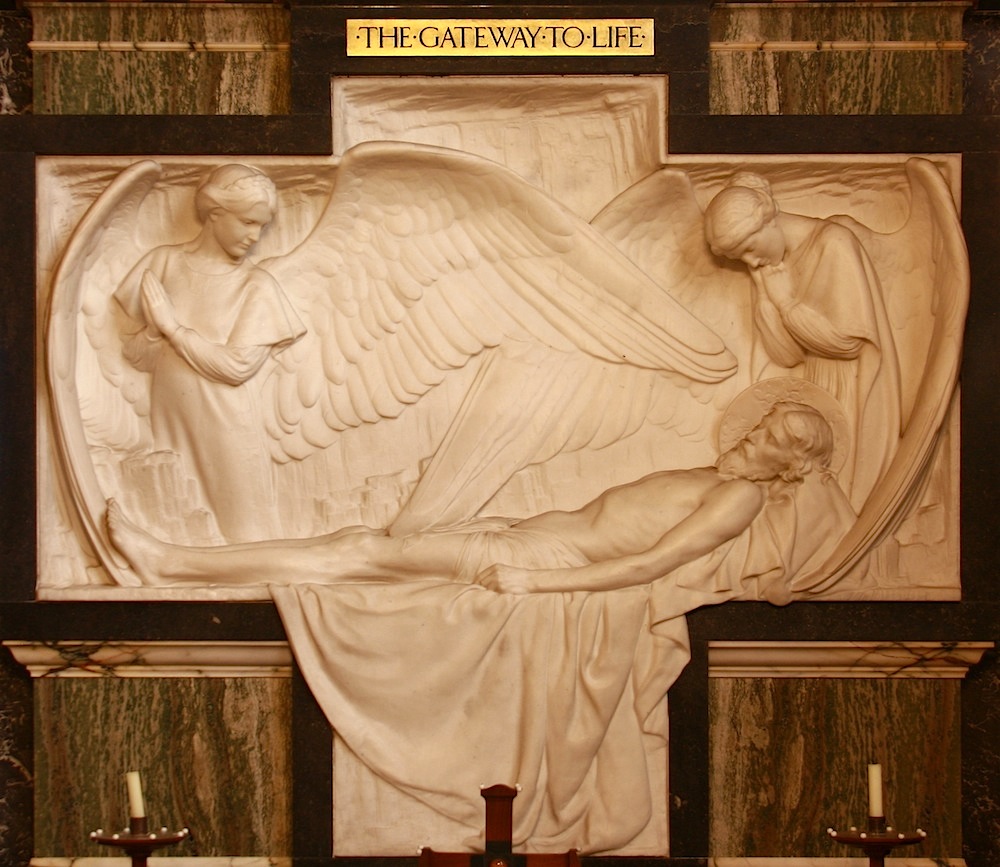 The Gateway to Life (1904) in St. Mary the Virgin, Great Warley, Essex, by William Reynolds-Stephens, with architect, Charles Harrison Townsend. [Click on image to enlarge it.]