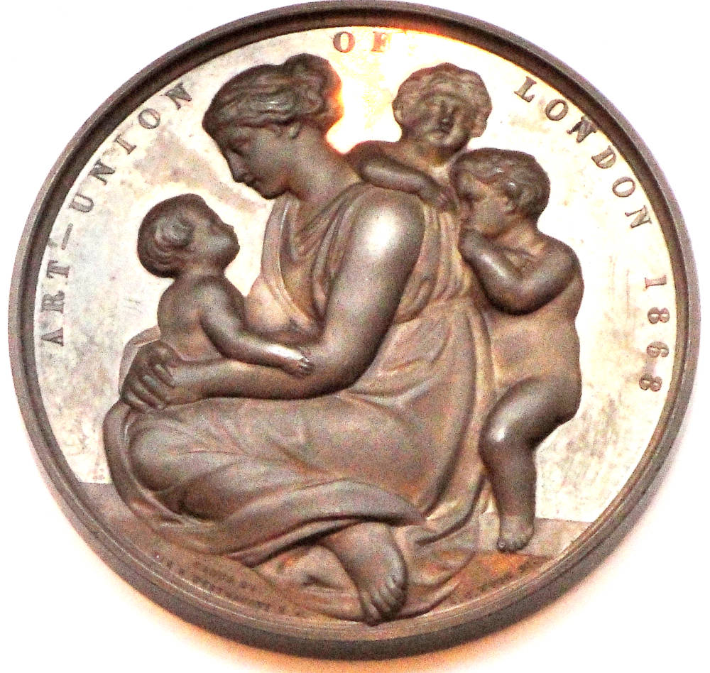 Inscribed obverse: “SIR RICHARD WESTMACOTT R.A. / 1775-1856 / R. WESTMACOTT (JUN) R.A.MOD. / L.C. WYON SCULP.” Reverse: “ART-UNION OF LONDON 1868 / CHARITY” by / SIR R. WESTMACOTT R.A.”
