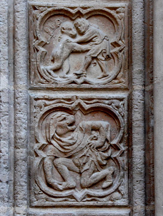 Details of the carving near the South door that Ruskin illustrates and discusses in Plate XIV in The Seven Lamps of Architecture.