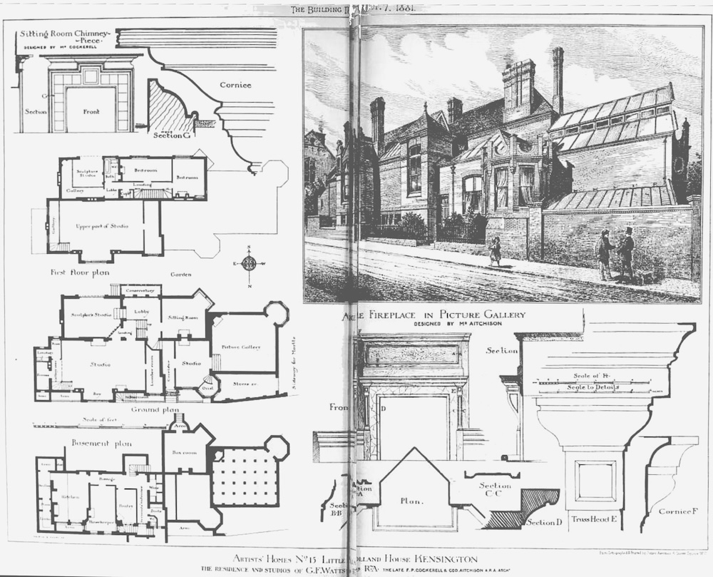 "Artists' Homes, No. 8: Little Holland House, Kensington." The Building News and Engineering Journal, Vol. 41 (1881): following p. 460. Internet Archive. Contributed by the Gerstein Library, University of Toronto. Web. 18 December 2025.