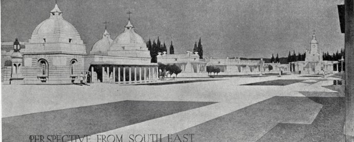 Staff Quarters on Axial Line Leading to Government House, Delhi. Designed by Sir Edwin E. L. Lutyens, R.A.. Source: Academy Architecture and Architectural Review.