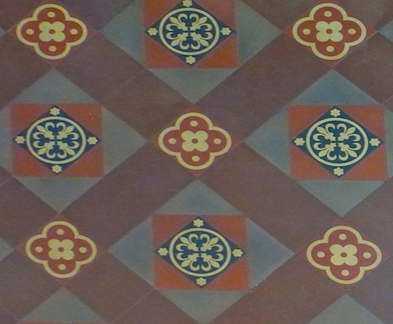 Left to right: (a) Bust of Prince Albert (1889), by John Hutchinson (1833-1910). (b) Encaustic floor tiling. (c) Bust of Queen Victoria (1889) by Hutchinson.