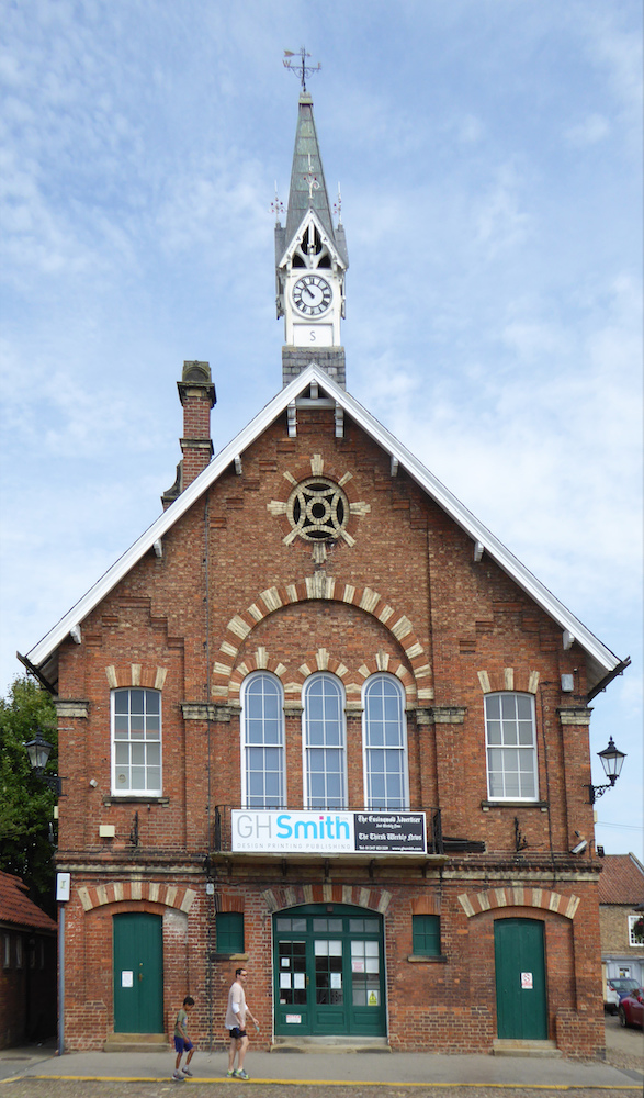 The Hall in Easingwold Market Place was designed by Edward Taylor (1831-1908), and built in 1864. This was after numbers of influential local gentlemen had formed a Joint Stock Company to remedy various shortages and inconveniences then being experienced in the little market town just twelve miles from York (Yorkshire Gazette, 9 April 1864: 9). It was listed by John Ward Knowles as one of the architect's earliest works.