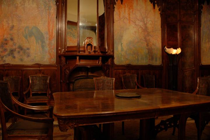 The Wisteria Dining Room. Designed by Lucien Levy-Dhurmer (1865-1953). 1910-14. Carved walnut and amaranth. Dimensions of room: Height 146, width 207, depth 315 inches (370.8 x 525.8 x 800.1 cm).