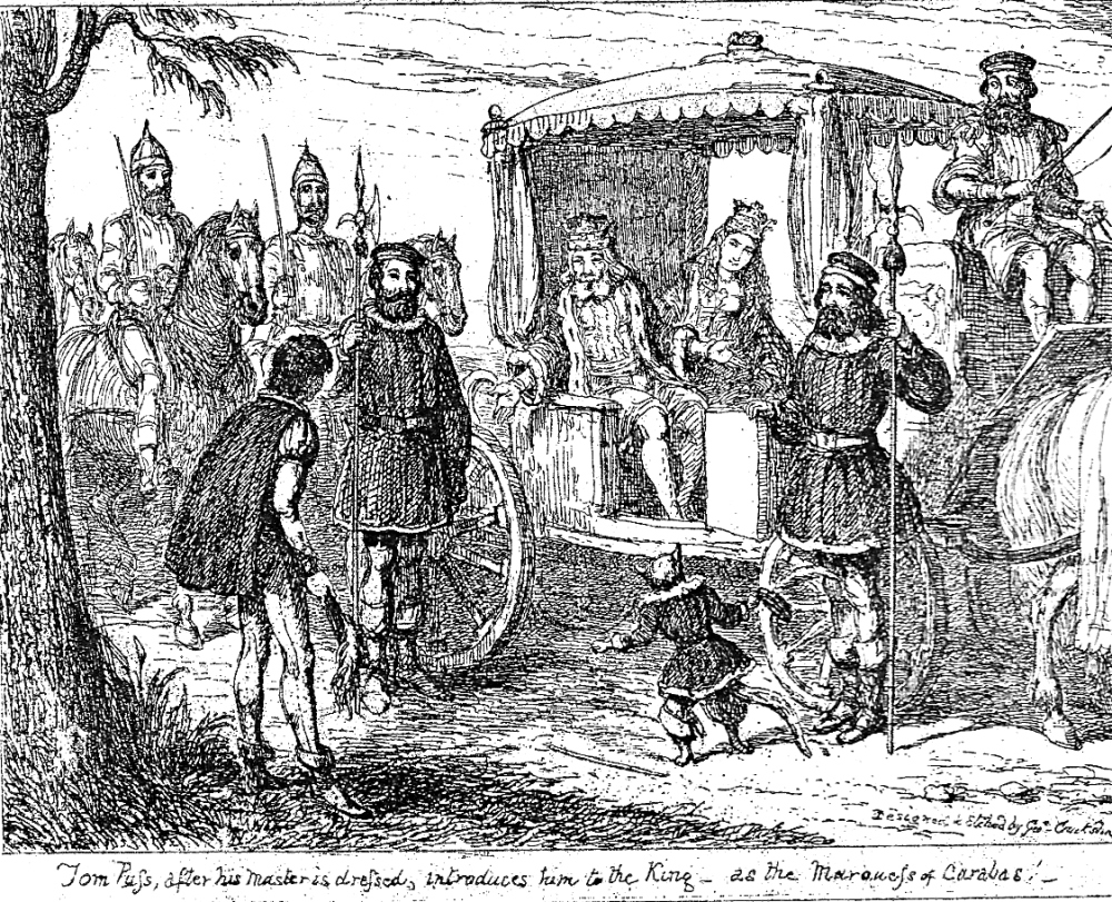 The king immediately commanded the officers of his wardrobe to run and fetch one of his best suits for the Lord Marquis of Carabas. — Charles Perrault, "The Master Cat or, Puss in Boots."