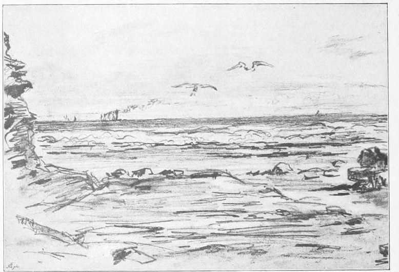 Near Whitby by John Leech. Pencil sketch. Source: Magazine of Art. [Click on image to enlarge it.]