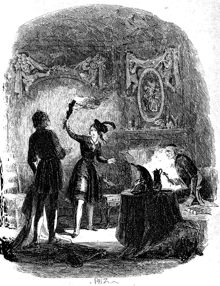 Charles Lever's Tom Burke of "Ours", Chapter LXXXI, "A Forest Path" (June 1844), facing p. 176 in vol. 2 of the 1844 edition, and 224 in vol. 2 of the 1869 edition.