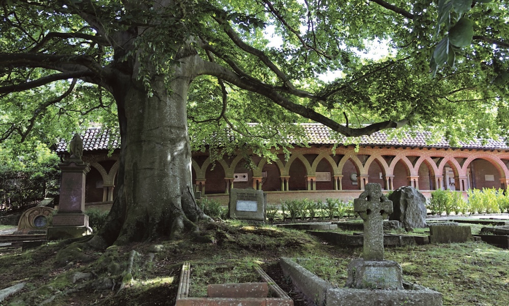 A view of Compton Cemetery and the cloister, 2019. Photograph by author.