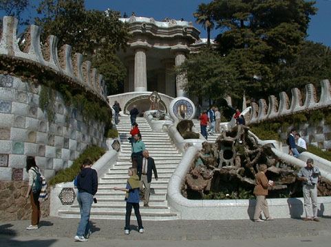 Parco Güell — Entrance from street level. Antoni Gaudí, architect. Barcelona, Spain