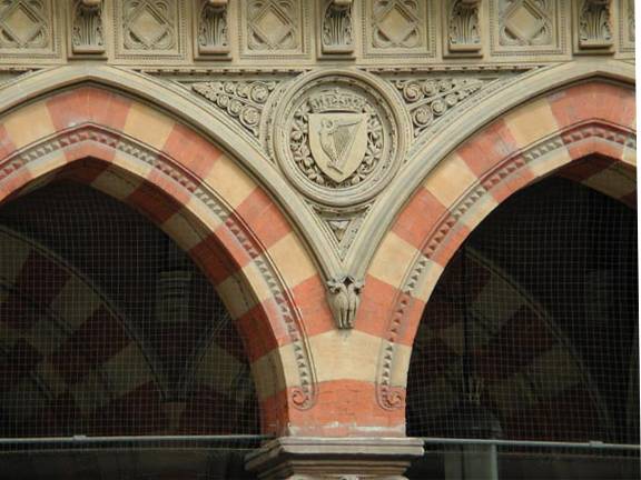 Símbolo de Gales. Estación de tren de St. Pancras y el Midland Grand Hotel Londres. Arquitecto: Sir George Gilbert Scott. 1868-77. La fotografía y texto por George P. Landow. [Esta imagen se puede usar sin autorización previa para cualquier propósito académico o educativo, siempre y cuando mencione (1) el nombre del fotógrafo y (2) enlace el documento a esta dirección URL.]